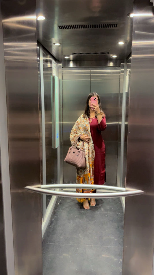 Ivory Mist Grey Gulnaar Printed Suit Set