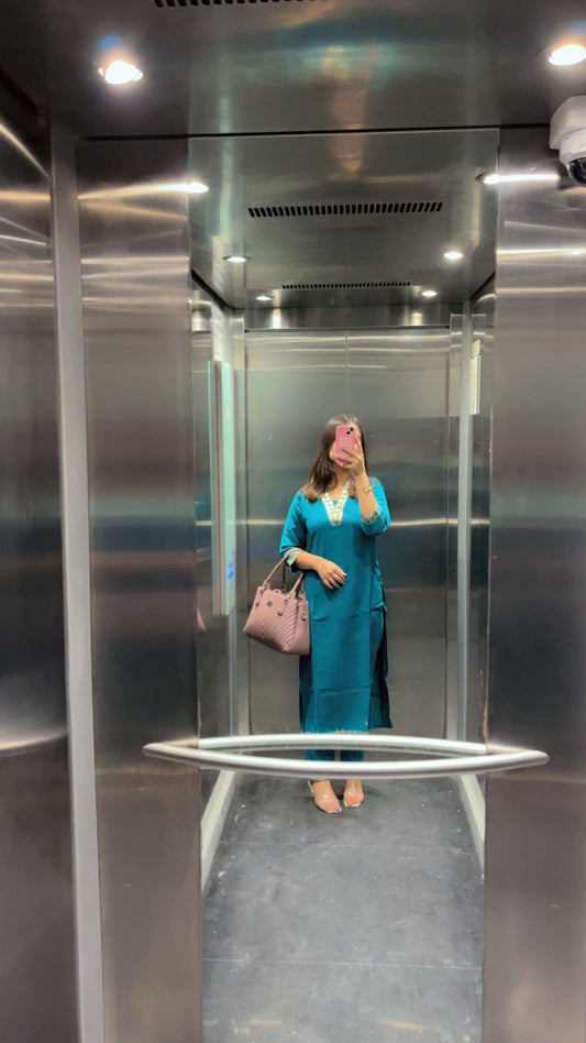 Aqua Teal Blue Muslin Cotton Kurta Pant Set