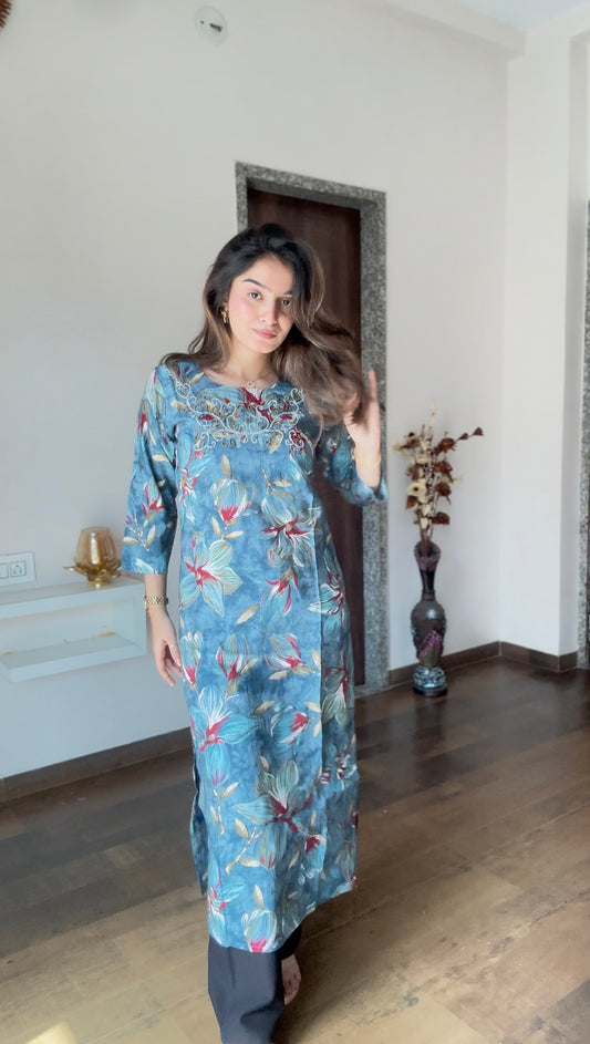 Azure Bliss Multi Print Kurti