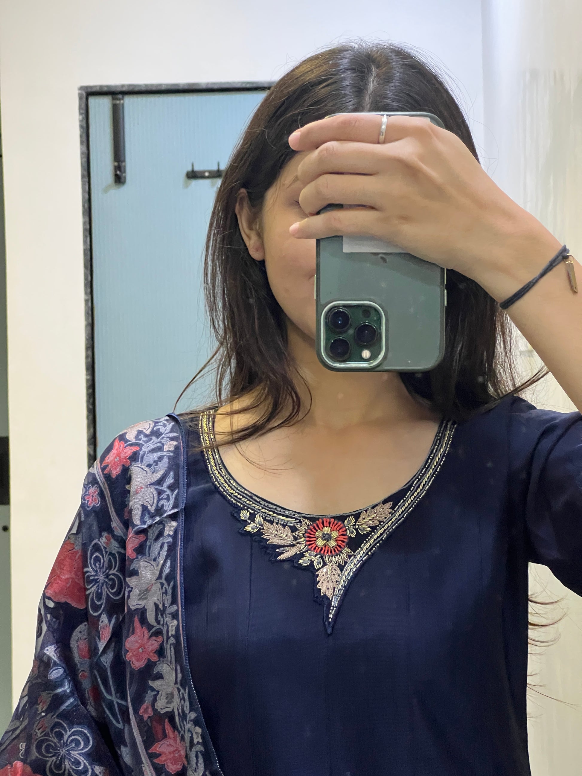 The Royal Blue Pure Cotton Anarkali Suit Set is a masterpiece of traditional Indian fashion. The anarkali suit is made from pure cotton, ensuring a comfortable and breathable wear. The intricate jacquard dupatta adds a touch of sophistication and glamour to the overall look. The royal blue color is perfect for making a statement at any occasion.